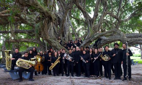 A flagship performing ensemble at Florida Atlantic University, the Wind Ensemble includes 50 of the finest student musicians at the university working with their conductor, Kyle Prescott. Celebrated for its performances of both masterworks of the literature and groundbreaking works by contemporary composers, they have received three separate invitations to perform at prestigious Southern Division Conferences of the College Band Director’s National Association (CBDNA) in Louisiana, South Carolina, and Georgia. The Wind Ensemble has collaborated with renowned visiting composers including John Mackey, Bruce Broughton, Michele Fernandez, James Syler, and Scott McAllister, providing them with valuable opportunities for artistic growth.